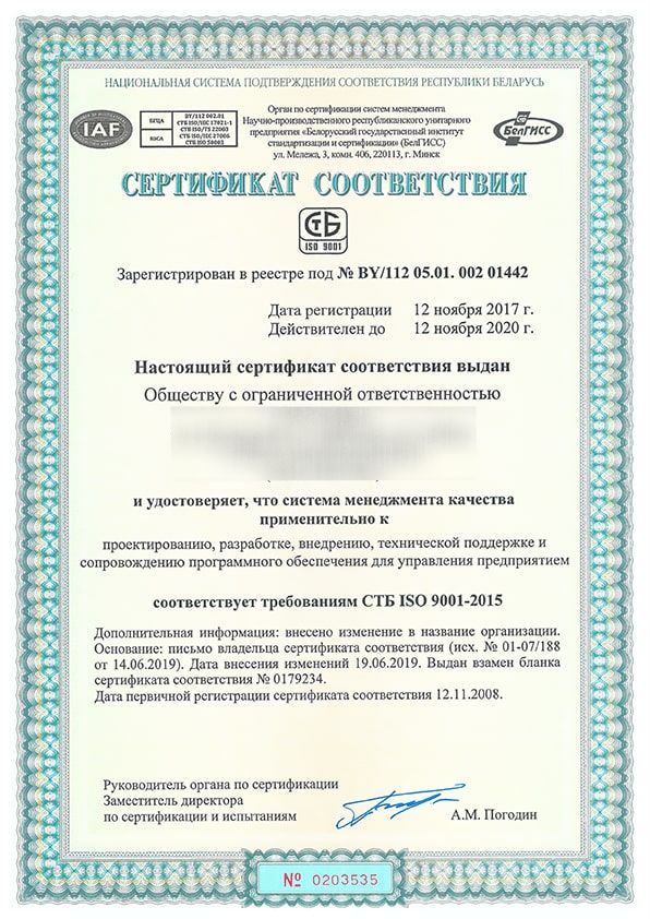 Международный стандарт ISO 9001:2015 «Система менеджмента качества. Требования» был разработан международным органом по стандартизации ISO. Главной целью данного стандарта является систематизация требований и определение общего подхода к управлению качеством. Стандарт ISO 9001 дает информацию что нужно делать, но не дает как. Стандарт устанавливает основополагающие требования, основанные на многолетнем анализе успешных организаций, без выполнения которых речи о качестве продукции/услуг не может и идти.